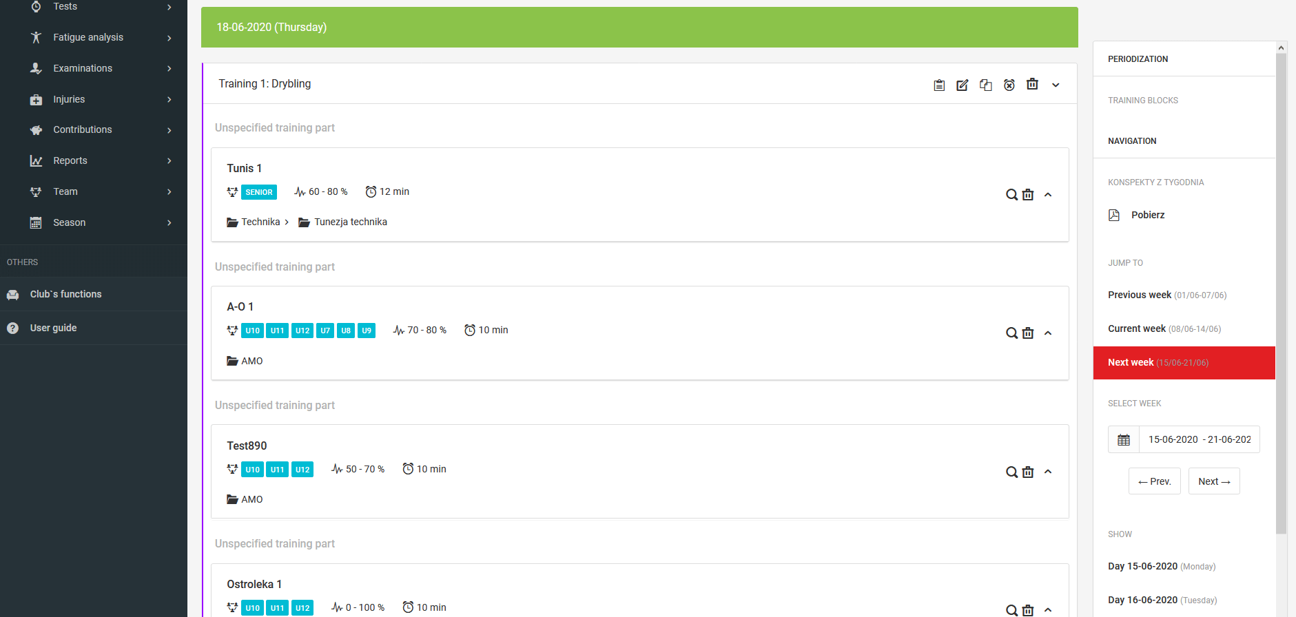 The order of exercises is determined by dragging the exercise to the appropriate part of the training. To do this, grab the exercise with the mouse and drag it to the appropriate part.